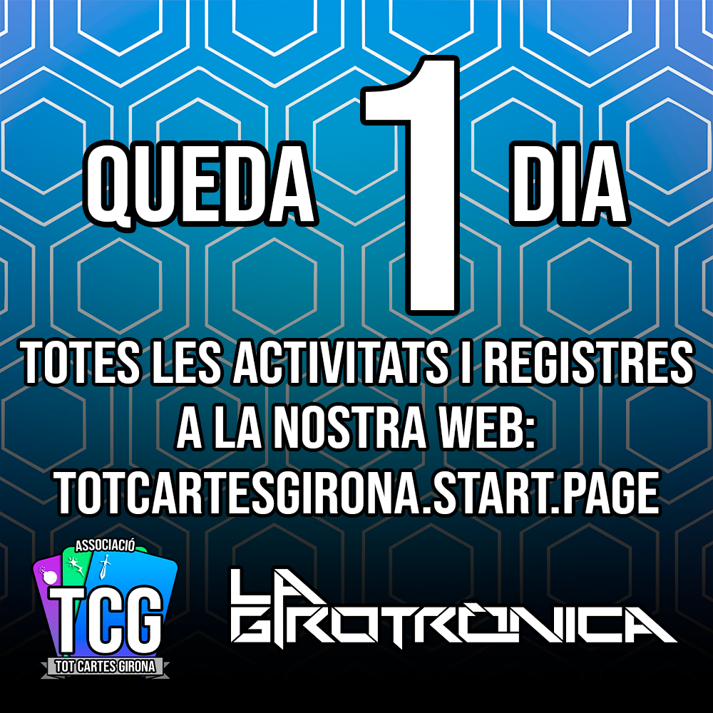 Demà és el gran dia, us esperem amb totes les nostres activitats a La Girotrònica, on podreu aprendre a jugar als TCGs del moment i participar en tornejos per aconseguir premis. No us ho podeu perdre!